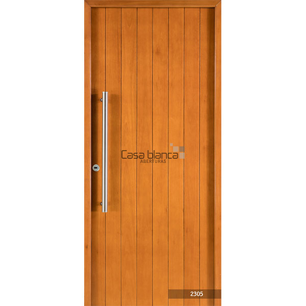 Línea de puertas de exterior de madera maciza, fabricada con Eucaliptus Grandis, cuyo proceso de laminado asegura estabilidad y robustez.