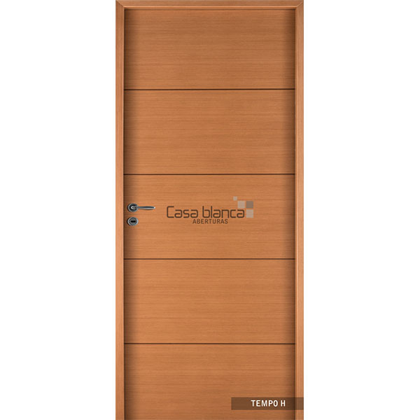 Puertas enchapadas con láminas de madera Leriex, de veta horizontal, con insertos de madera oscura, según modelo.