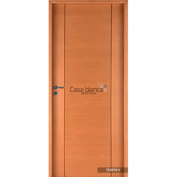 Puertas enchapadas con láminas de madera Leriex, de veta horizontal, con insertos de madera oscura, según modelo.